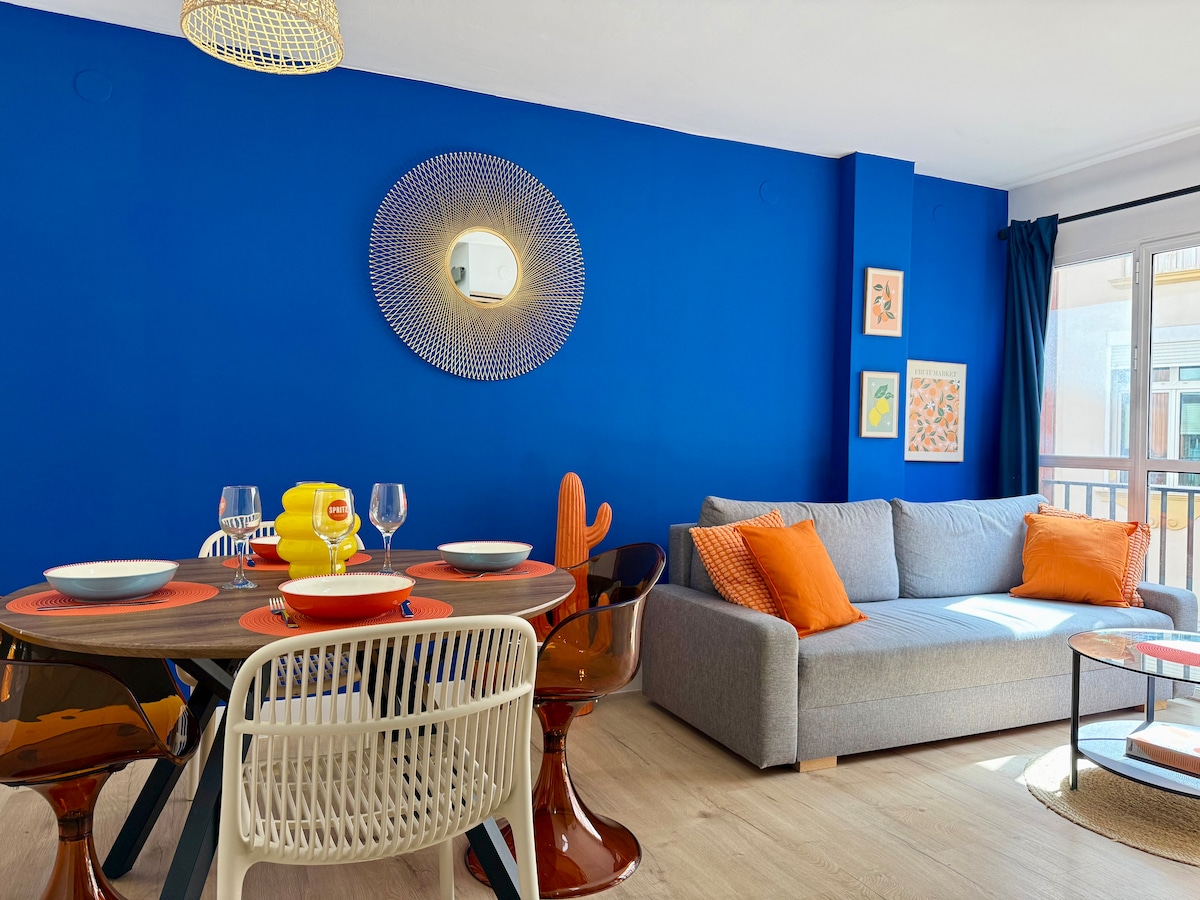 The apartment is located on the first line of the promenade, has a terrace, living room and kitchen with ocean views. Located in the perfect place to discover Malaga. The house is located on the second floor of a protected and rehabilitated building with charm built in 1850. The building is located on the beachfront with magnificent views of the beach from the living room, terrace, and kitchen. It has 2 bedrooms, the master bedroom with a bathroom, a living room, a kitchen, and a dining room.