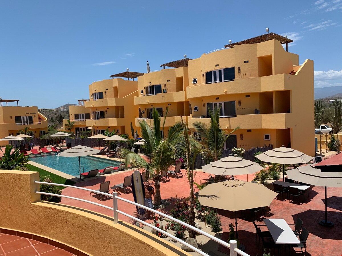 Welcome to Villas del Scarlet Cardones! Retreat to our peaceful downstairs condo in the heart of Cerritos. This is the only swim-able beach north of Cabo on the Pacific! Take in the ocean views and amazing Sierra de la Laguna mountain range from the property on your very own rooftop balcony. The condo is a 2 minute walk from the beach, restaurants and bars. We're located around 1 hr from Cabo and only 7 kilometers from Todos Santos. A/C, Pool, Hot Tub, Outdoor Grill Area, & WIFI!