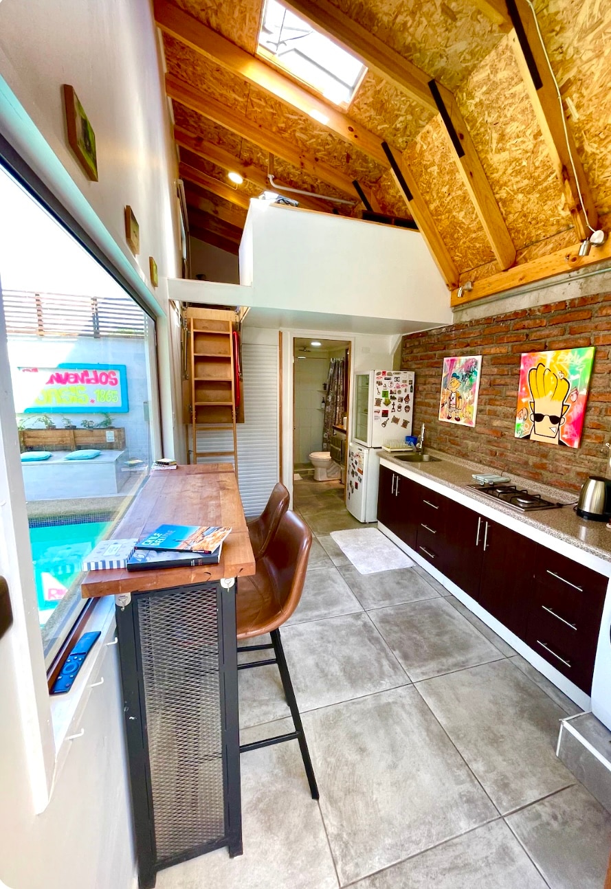 Este hogar es para esa desconexión que andas buscando, en un oasis en medio de la ciudad, disfruta la experiencia en una Tiny house de 18 mts2 con todo las comodidades necesarias para que lo pases increíble y descanses del ajetreo diario. Contamos con PISCINA PRIVADA , cocina, 2 baños, estacionamiento techado, comedor interior y exterior, dormitorio cama 2 plazas, Tinaja agua caliente privada (VALOR EXTRA) Ven y vive el encanto de alojar en una TinyHouse sin salir de la ciudad