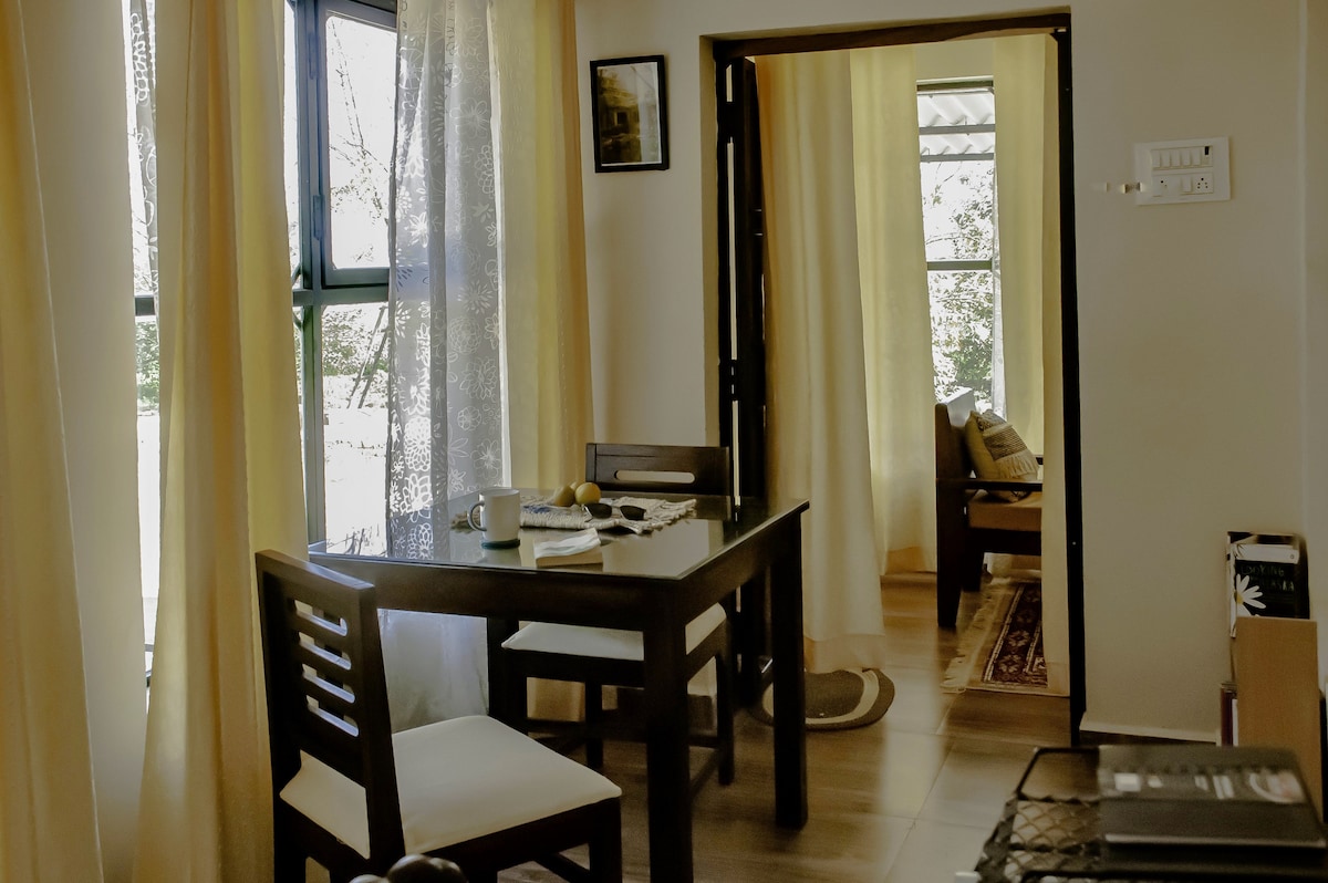 Relax with the whole family at this peaceful place to stay. It’s a 1 bhk with all amenities. For more occupancy, please check another “Hillside Sukoon | 2bhk” listing. Can accommodate more people as we’ve sofa cum beds and mattresses handy. We are ideal for work-from-home folks. We have a 200 Mbps Airtel connection, an Automatic washer, Ironing service (iron also available), RO, and a stereo. No decorations, no house parties. We are a pretty chill homestay, expecting similar guests.