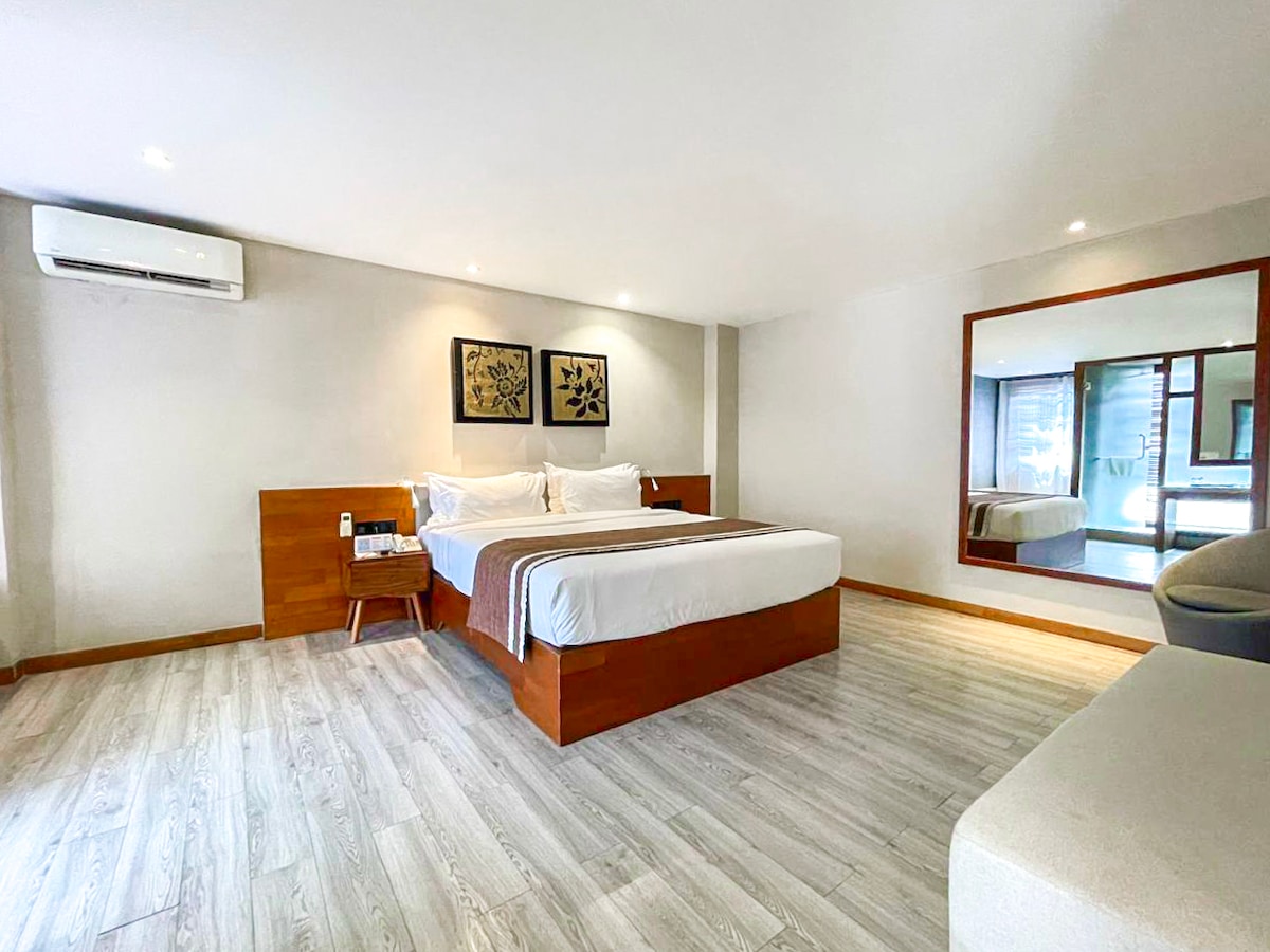 Deluxe Double Room offer luxury and spaciousness with city views. king size bed and large private balcony. Rain shower, hairdryer, complimentary toiletries, robes, slippers, remote-controlled air- conditioning, flat-screen TV, writing desk with effective Wi-Fi, mini bar, complimentary daily drinking 02 bottles water, electric kettle with tea/ coffee making facilities and a wake up service. Included are complimentary Western or Asian breakfasts, your room is made-up daily.