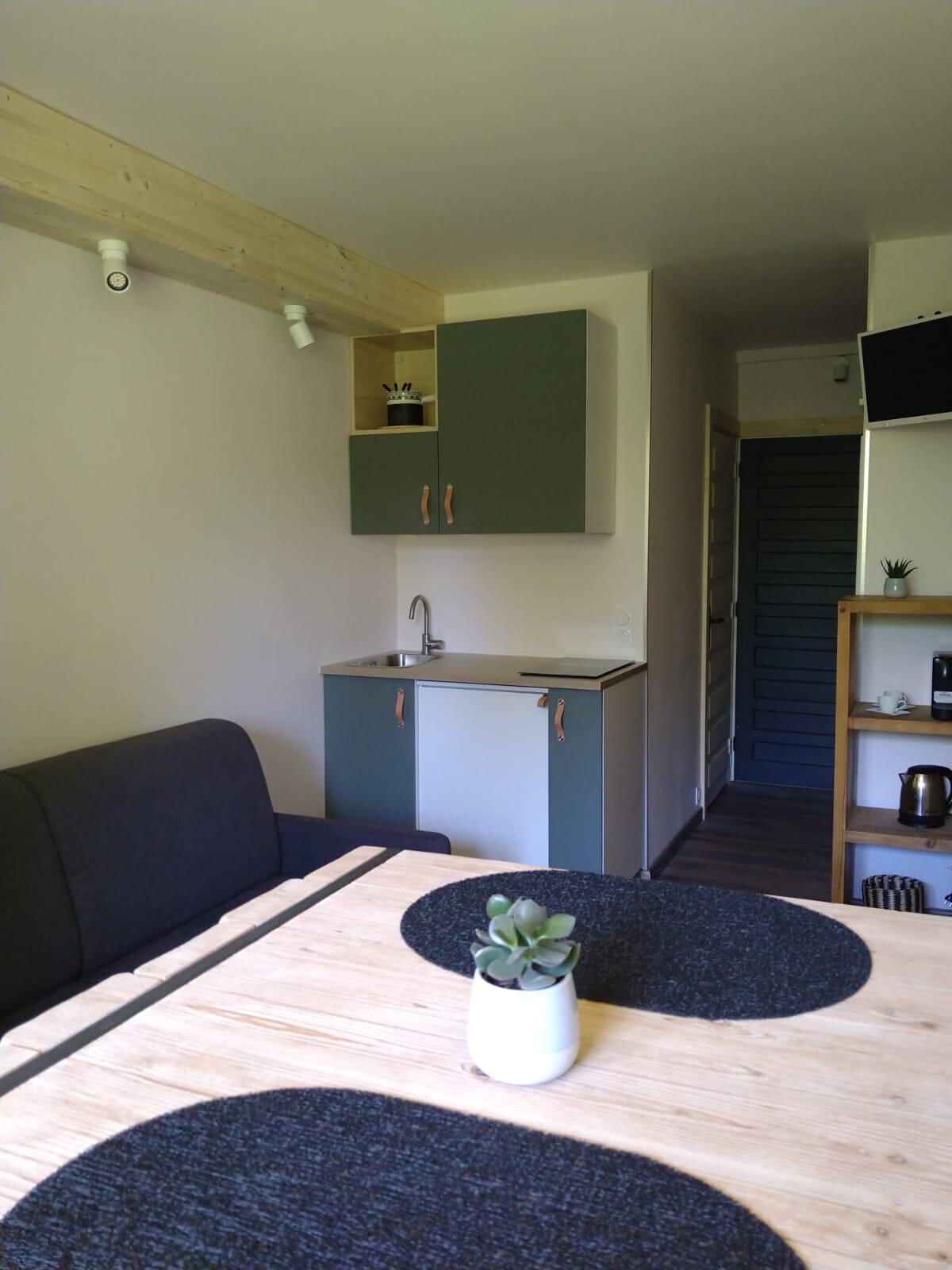 Bright apartment of 30m2 for 2, 3 or 4 people. A separate little bedroom with a double bed and a living room with 2 sofa beds. Clear view over the Brevent. Very functional apartment renovated with care, double-glazed windows, 2 minutes’ walk away from the pedestrian street. WIFI, smart TV, Chromecast, small balcony with a table and 2 chairs.