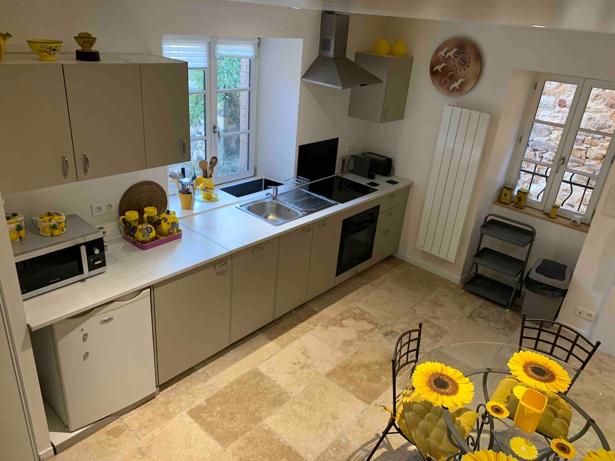The highest house in Usson, one of the most beautiful villages in France, 2 bedrooms and a living room each with access to the outside, 3 terraces on 3 levels and 3 orientations (east, south and west, for the sunset!), 2 with a 180° view of Auvergne and its volcanoes. For more independence, a 3rd bedroom, with a bathroom, in the small neighboring house, is offered at €60 per night, for more than 6 guests (max capacity of the main house) Basic shops 5 km away Alt 574 m 75 in 10 minutes
