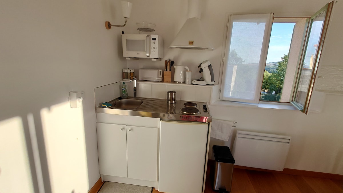 In the center of Champeix, a typical Auvergne village, this fully renovated studio is located on the first floor of a village house with independent entrance. Tourist village close to Besse, Super Besse, Murol, Saint Nectaire and the Auvergne lakes. Market on Friday mornings all year round, and at night on Wednesday evenings in July and August. The studio is close to all shops (bakeries, butcher shop, pharmacies, cafés, restaurants, doctor, florist, press, Vival, Intermarché...).