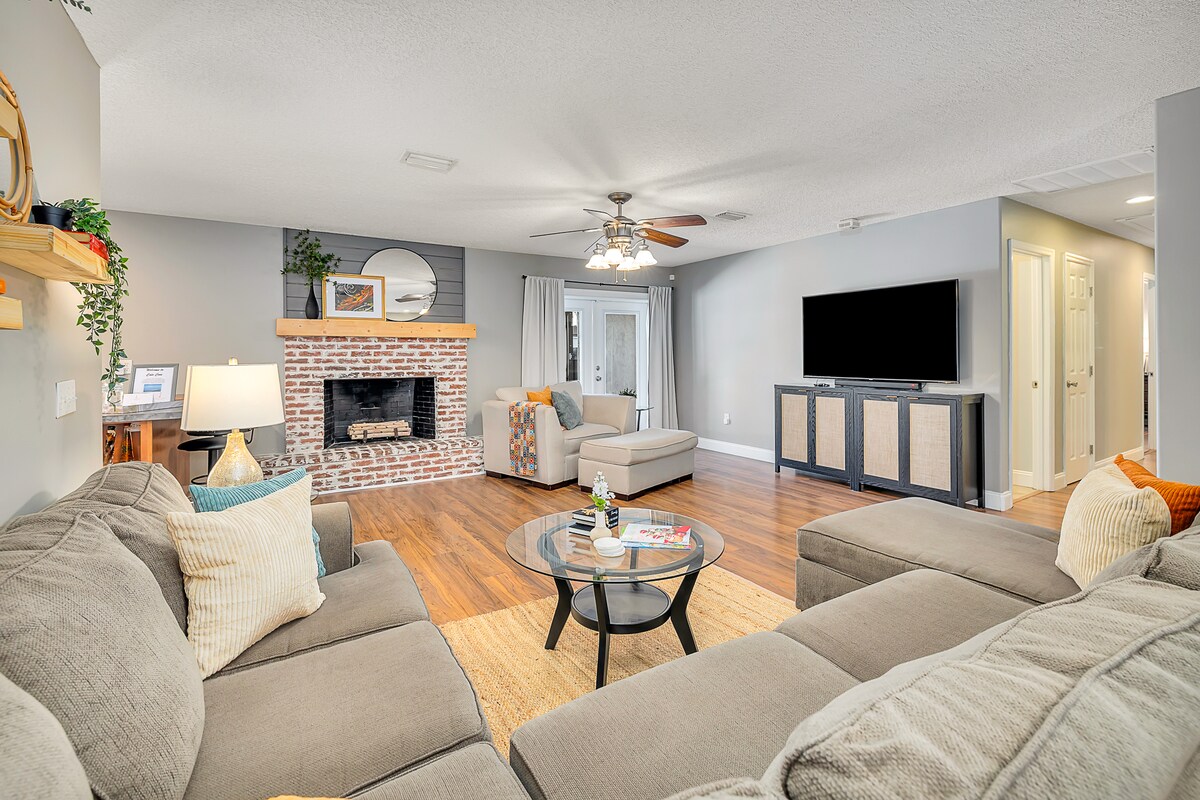 Stay at our coastal retreat for a seaside adventure. Located off an active street that places you central to all that you need. Within minutes from shopping, restaurants, parks and Brunswick’s charming waterfront downtown. Less than 1 mile from the hospital and Coastal College of Georgia, 4 miles from FLETC, 6 miles from St. Simons and 15 miles from Jekyll. Opting for a relaxing night in? Enjoy the outdoor covered pavilion or satisfy your competitive side with our variety of games.