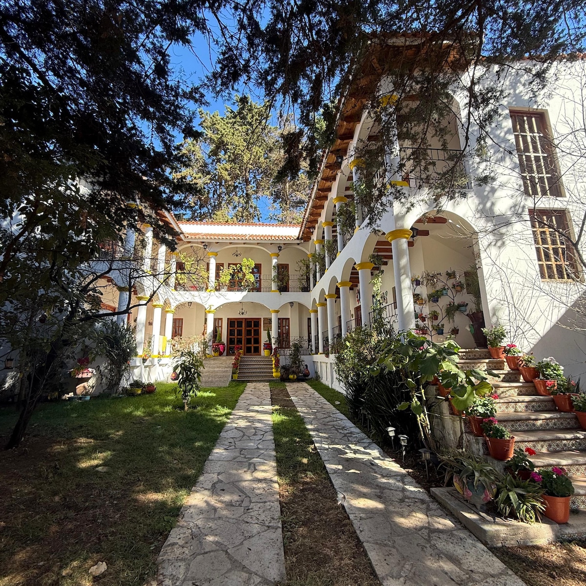 The perfect mix of down town confort and in house entertaiment for your friends or family! From watching the sunset from the hammocks on the tree house, enjoying a bonfire in the yard to laying back after a day trip with Netflix and take out, in front of the fireplace. Plus, amenities like a spacious and equipped kitchen, yard games and even a michelada station. In the heart of town! Only a few steps from the artisanal market, museums, cafés, convenience stores. 5 blocks from the central plaza.