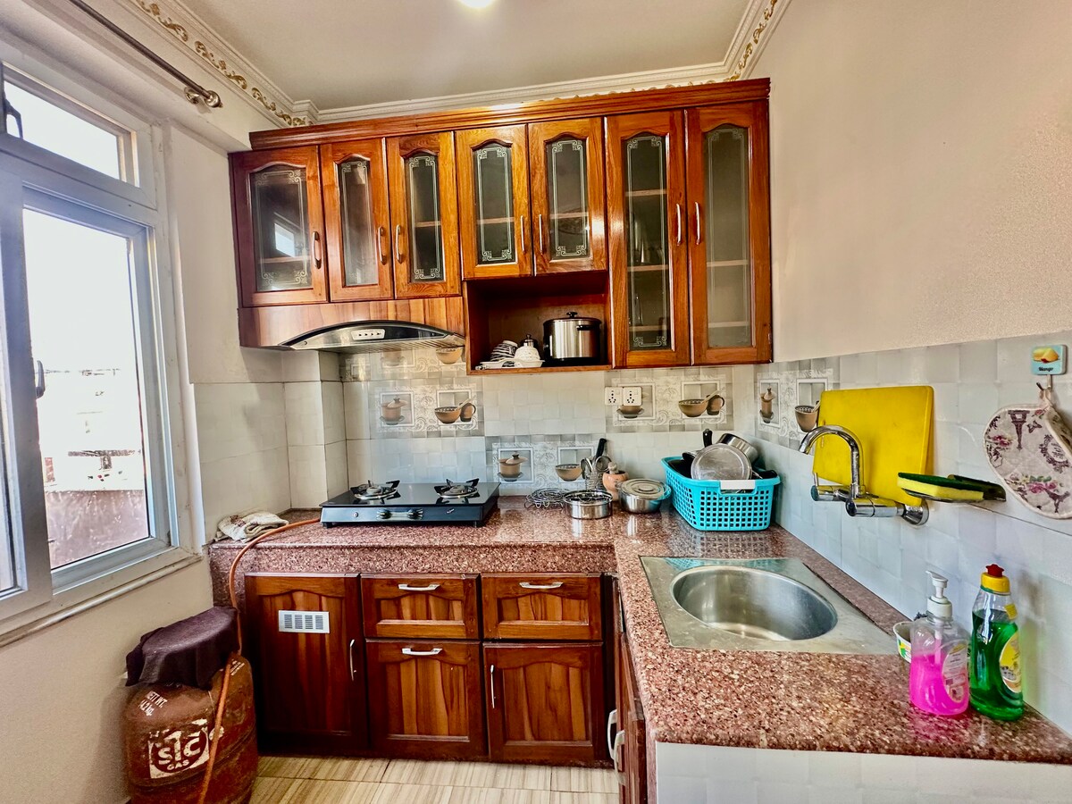 Welcome to our charming Nepalese flat! This apartment seamlessly blends modern comforts with classic aesthetics. You'll enjoy facilities like cozy queen bed, a fully-equipped kitchen, balconies, and modern bathrooms. The apartment is also equipped with water heating and with exclusive access to your own fully furnished, modern space.