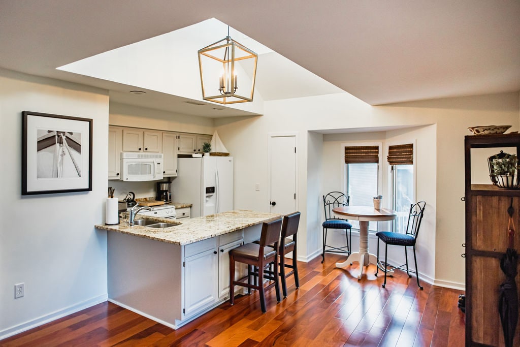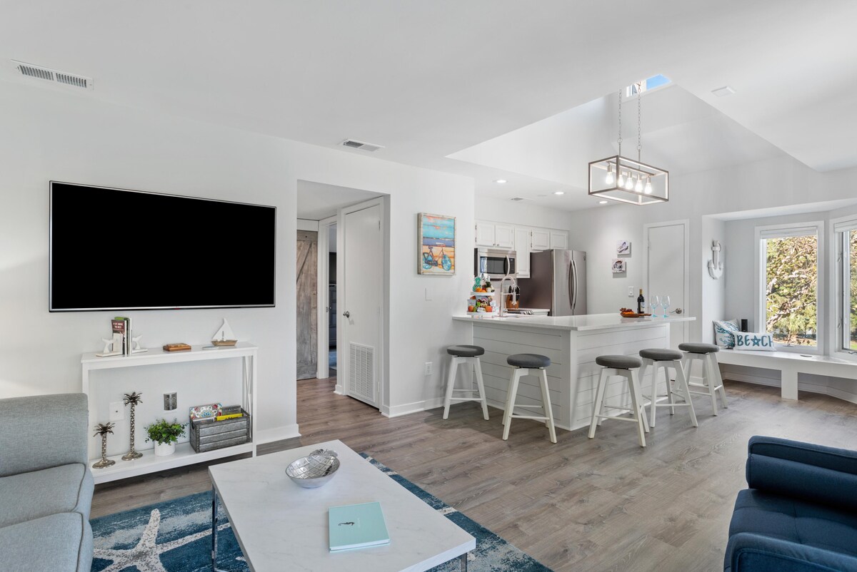 Enjoy this stylish one-bedroom, 2nd-floor villa located 100 yards from the beach on beautiful Kiawah Island. It has an 18-foot vaulted ceiling with a beautiful lagoon view from the screened porch. The bedroom offers a king-size bed, desk, walk-in closet, and a remodeled bath. The fully equipped kitchen includes a dining table for four. The villa also has a new queen-size sleeper sofa, hardwood floors throughout, a washer/dryer, and a dedicated parking space immediately in front of the building.