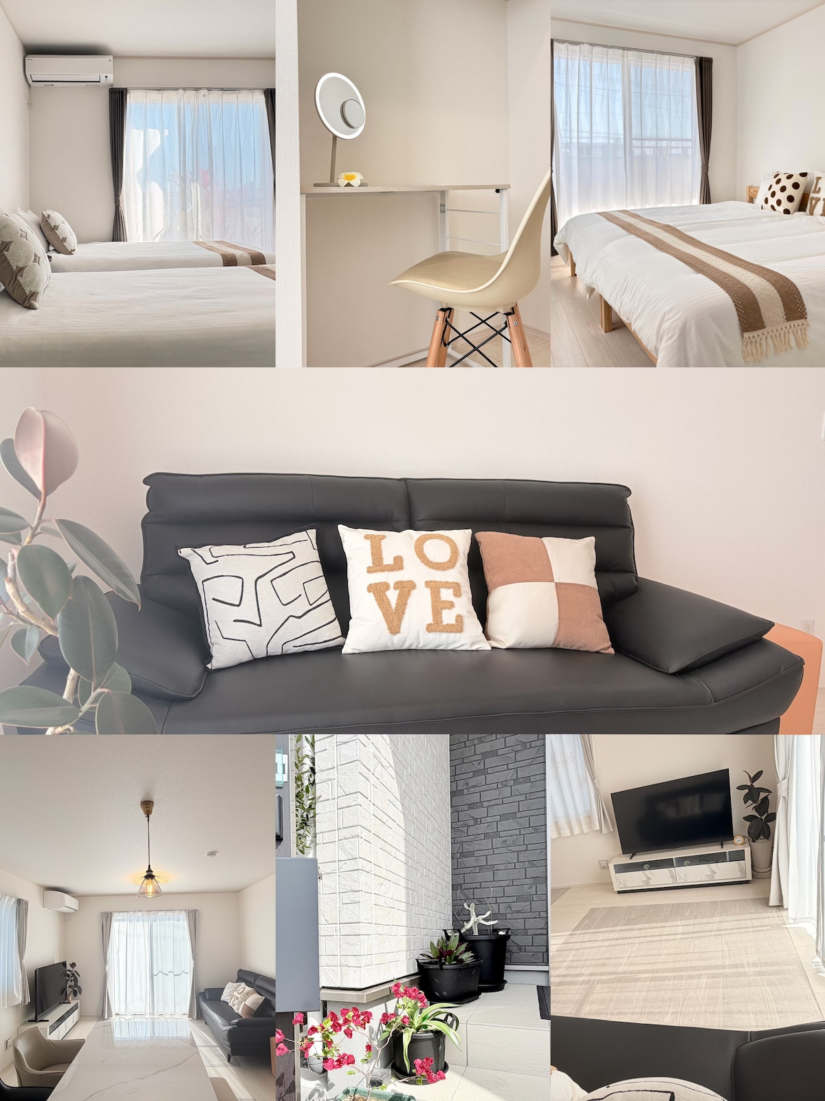 全新獨棟別墅,車10分鐘直達機場,租車公司聚集,近奧特萊斯。一樓設臥室,周邊24小時超市,免費停車。