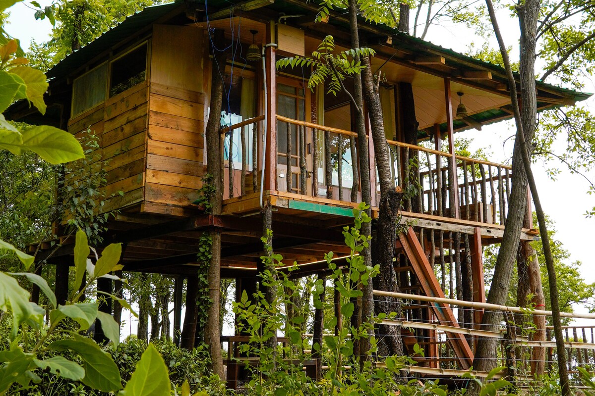 Escape to our handcrafted treehouse in Bir, India's paragliding hotspot. This eco-friendly retreat is perfect for couples, families, or friends. It fits up to 4 guests and is self-service, with parking included. Surrounded by tea gardens and just 4 minutes from the market, enjoy the freedom to explore and relax. Cook your own meals in the induction based kitchen and experience a sustainable stay. Book now for a unique green getaway!