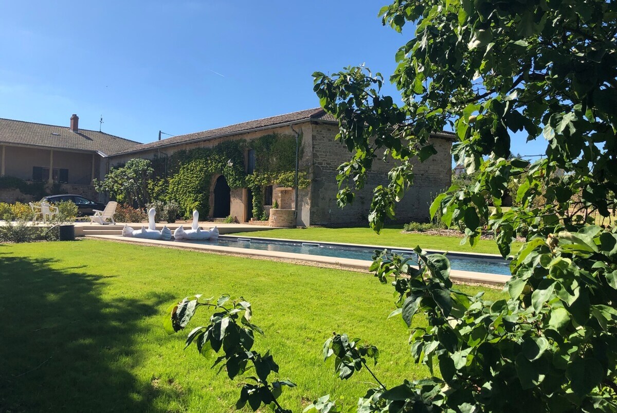 Beautiful character house in the heart of Beaujolais, 15 km from Mâcon and very close to the Saône and Loire with its famous vineyards. Tastefully renovated rooms, very high ceilings and almost all with a decorative fireplace. Floors in cement tiles or period parquet, refined decoration, based on old 'antique' or family objects (beautiful dishes). High quality sanitary facilities.