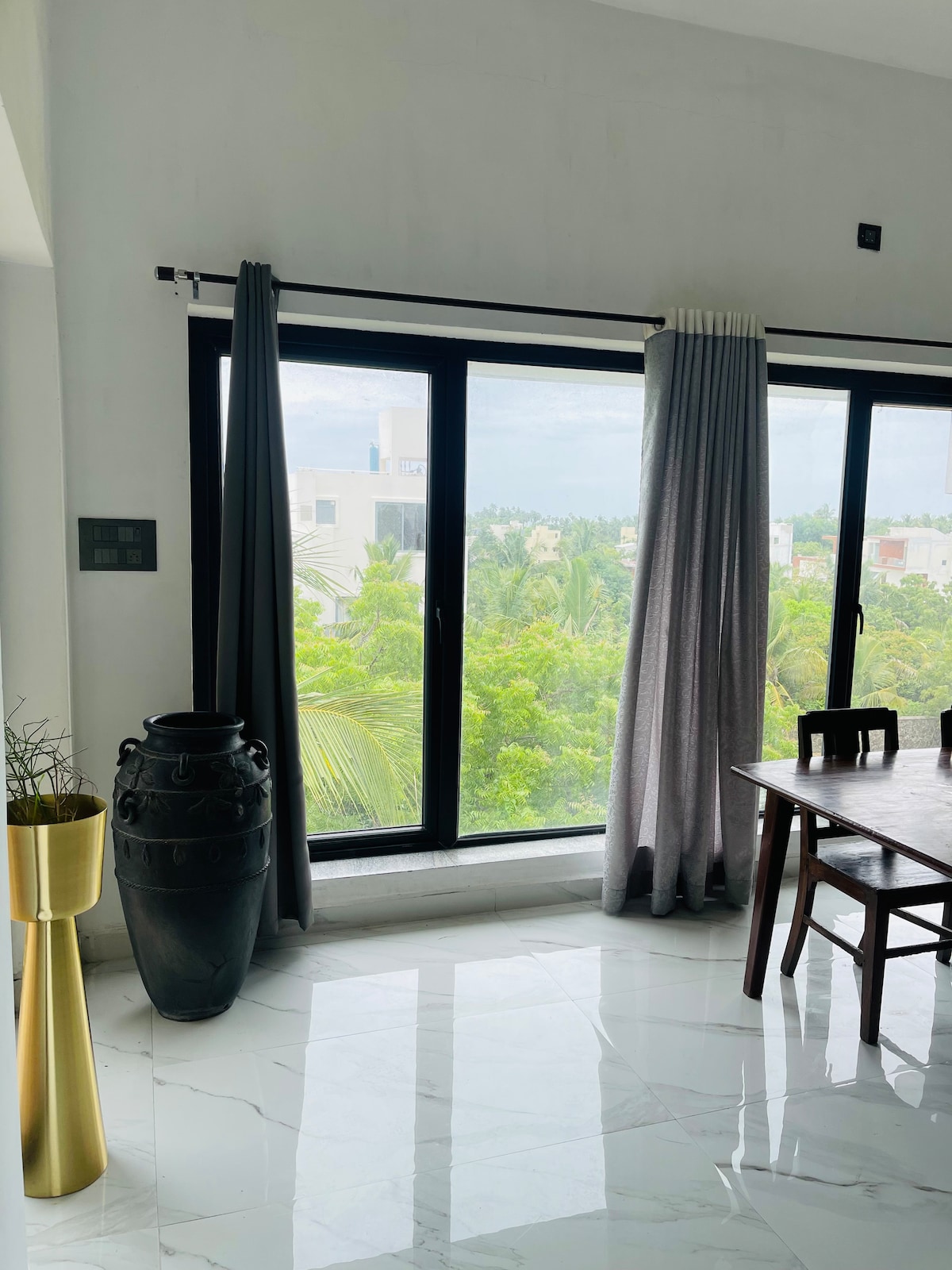 Welcome to our Barcelona-themed 2 BHK lake view apartment in Chennai! Perfect for families, couples, or business travelers. Enjoy stunning lake views from the living room and bedrooms. Fully furnished with rustic wood furniture and all amenities including a cozy living area, equipped kitchen, oven, washing machine and two air-conditioned bedrooms with wood accents. High cleanliness standards with fresh bed sheets, toiletries, and towels. Prime location close to many malls, companies and beaches!