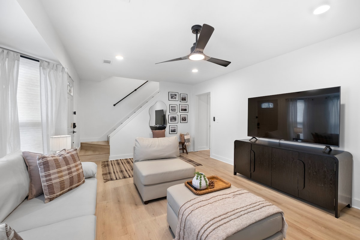 Welcome to our fully renovated townhouse in Downtown Alpharetta! Enjoy an oversized kitchen with top-of-the-line William Sonoma kitchenware, a spacious family room with fireplace and working desk. Retreat to two luxurious ensuites upstairs, including a king bed, dual vanity, and queen bed with PacknPlay option. Explore vibrant Downtown Alpharetta, with walking trails, and 30+ restaurants just steps away. Experience modern amenities and small-town charm - book now for an unforgettable stay!!!!!!