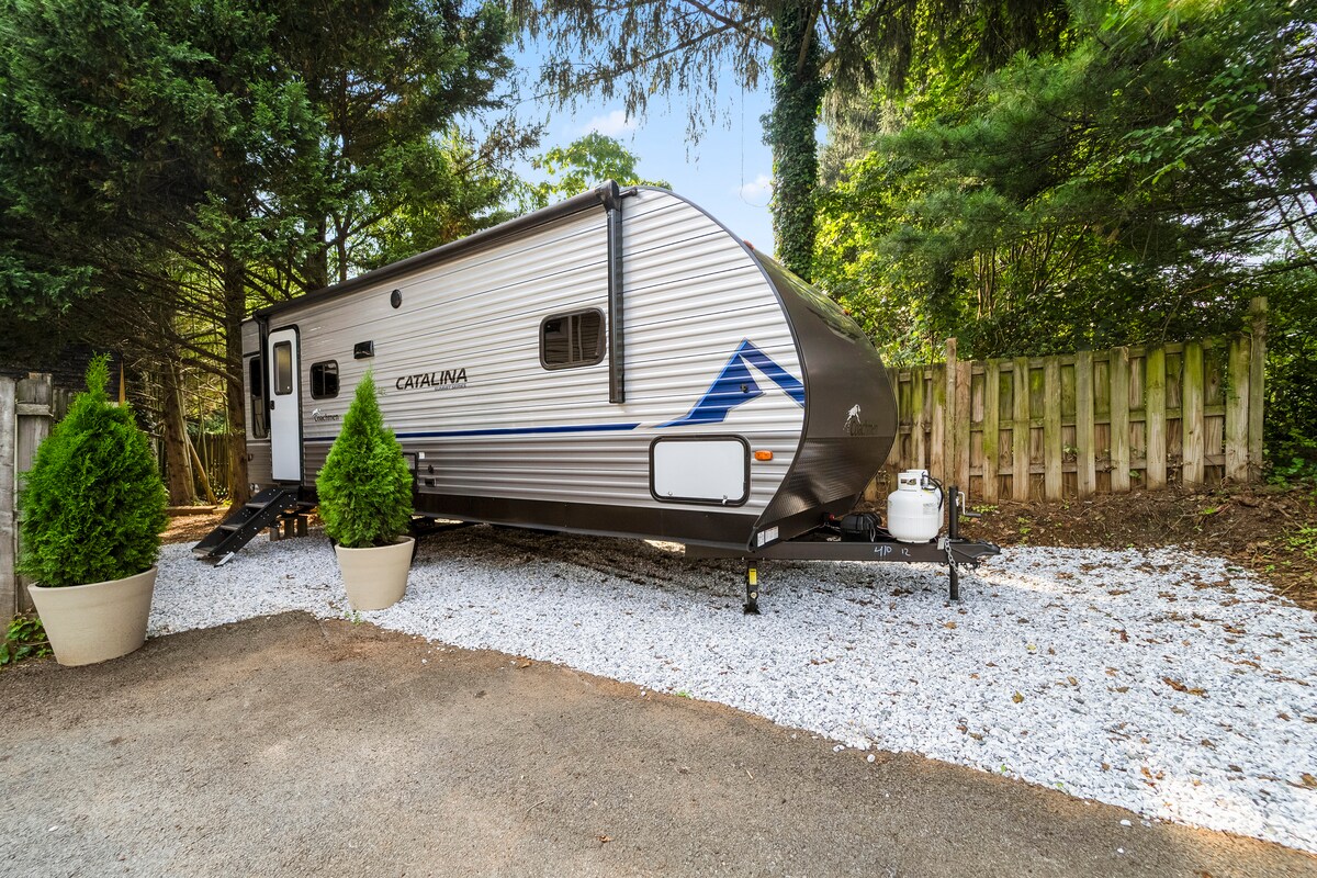 Just outside the buzz of D.C., a hideaway offers a peaceful, romantic retreat in the heart of Lanham. Surrounded by the natural beauty of Prince George's County, this cozy RV features a large full+full sofa bed, a full bed, soft lighting, and windows for golden sunset views. Enjoy intimate meals in the charming kitchenette, then unwind in your outdoor space. Whether you're stargazing or exploring nearby Lake Artemisia, this is the perfect spot to relax and make lasting memories.