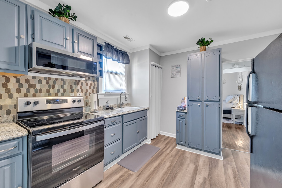 Brand new construction located exactly one block from the beautiful Chesapeake Bay at East Beach in Oceanview! Easy drive to the Naval Bases. A quick walk to the beach or Bay Oaks Park, this four bedroom, three bath home is perfect for a relaxing getaway. This bungalow is great for groups of 8 or fewer. Brand new appliances, washer/dryer, private off-street parking. This house features an open floor plan. Guests are provided with linens, towels, toiletries and high speed internet (SmartTV).
