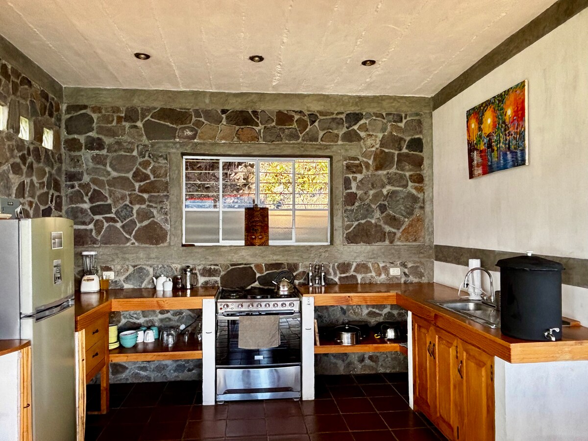 Villa Ónix Un refugio céntrico recientemente construido en una montaña, 180 °grados de increíbles vistas panorámicas desde cualquiera de sus esquinas. Un diseño totalmente expansivo, una cocina bien equipada abierta entre un comedor y una sala aseguraran el confort de tu descanso y convivencia. Un amplio deck con un Jacuzzi infinito, perfectamente situado con la mejor vista, te hará sentir que eres parte del paisaje. Al llegar al área de parqueo debemos subir 75 escalones para llegar a la villa.