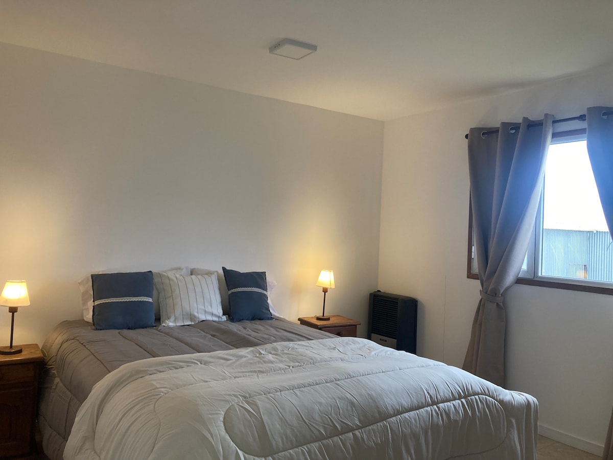 Beautiful detached cabin, 28 m2, new construction, located on the main avenue of Puerto Natales. We offer a space with lots of natural light, ventilation, and a large garden. You'll always see two lovely little dogs in the garden. The house has a double bed plus a 1/2 square sofa, refrigerator, full kitchen, shower towels, bed linens, shampoo and heating. We offer private tours and trout and salmon fly fishing. @intothewildpatagonia @cabanabulnes