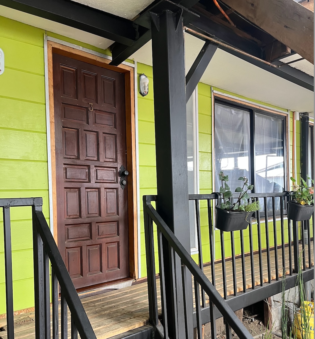 Vive la experiencia única de vivir en Palafito - sector Céntrico, Tranquilo y Seguro. Departamento independiente en Palafito. Es un ambiente amplio, equipado con cama matrimonial + sillón cama, cocina abierta, TV/Wifi, y baño cómodo. Calefacción central. Todo lo necesario para que tu estadía en Chiloé sea la más grata experiencia.