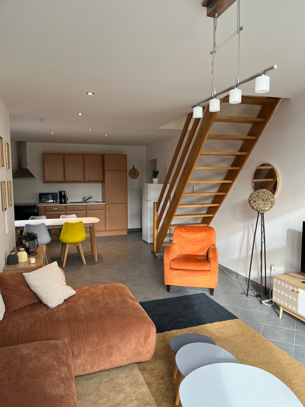We will welcome you to a brand new studio in the heart of the Attert Valley. This loft will offer you a view of horses in high season and allow you to listen to the birds singing from dawn. It consists of a kitchen equipped with a friendly central island, walk-in shower and partly covered terrace. Have a pleasant stay discovering all the hikes and activities around L'Arrêt 517! It is also ideal for trips to Arlon or Luxembourg.