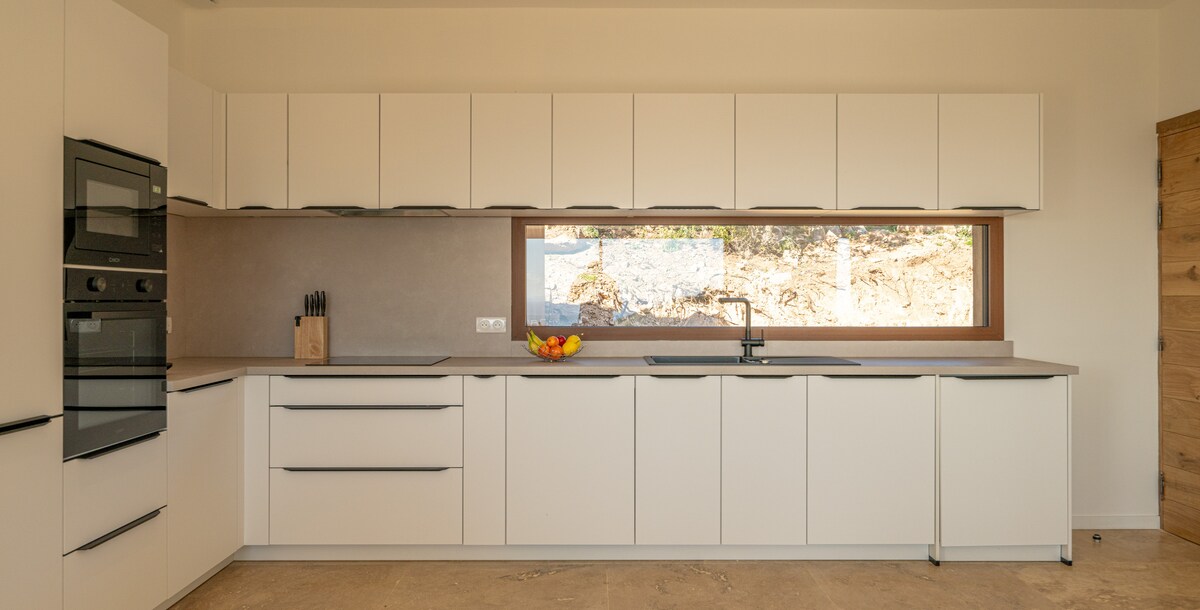Stone residence between sea, mountain and pool.