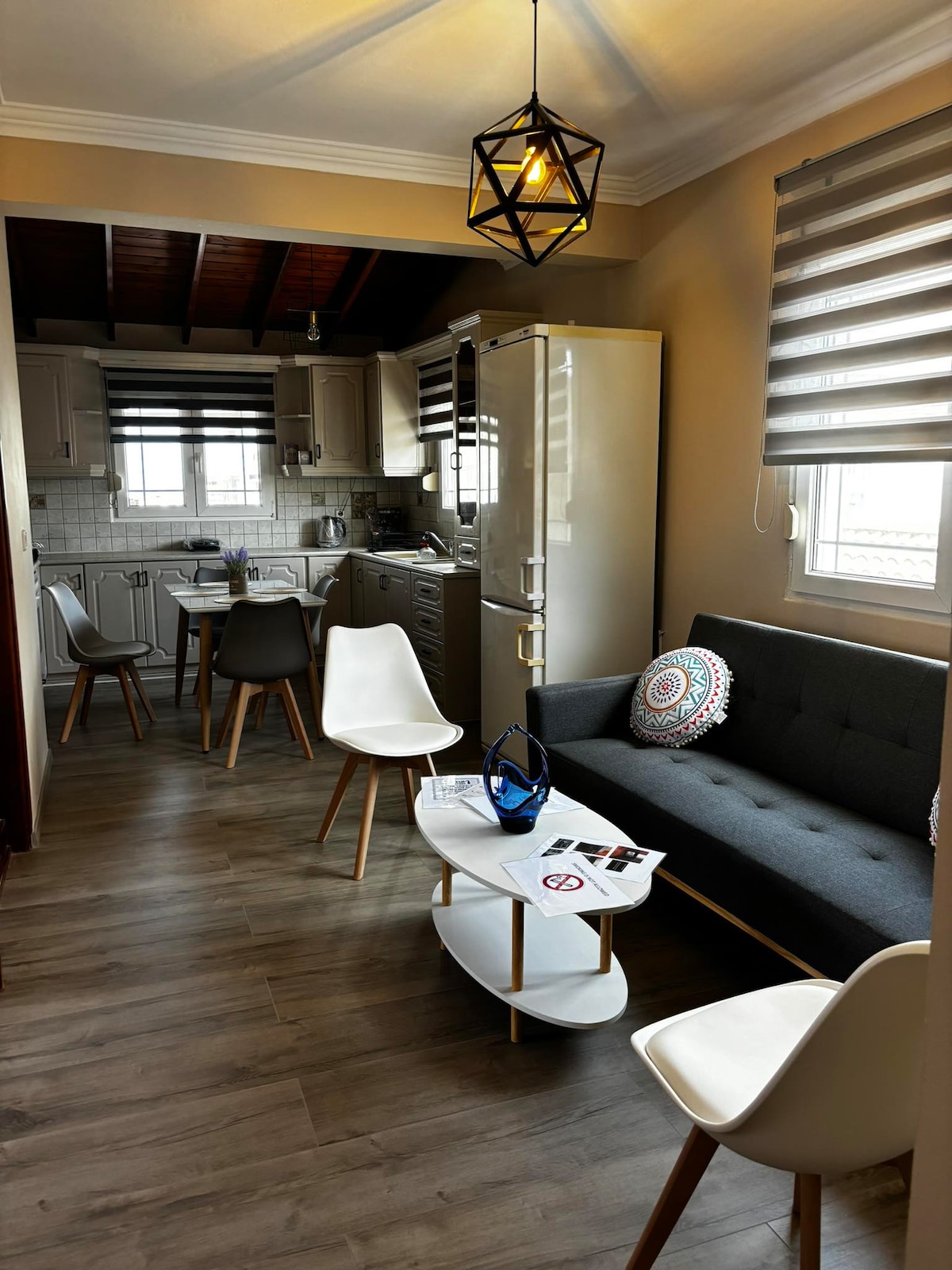 A unique, luxurious 2-bedroom apartment, in the center of Chios, with stunning views, designed to offer you absolute comfort and tranquility. With minimal decoration, and a stunning private terrace with panoramic views! ✔ Enchanting Rooftop – Fully equipped with comfortable furniture and pergola, ideal for relaxing and enjoying your drink or coffee. ✔ Unique location in the Center – At a key point, in the port, just a few meters from the shops, and the cafes of the city!