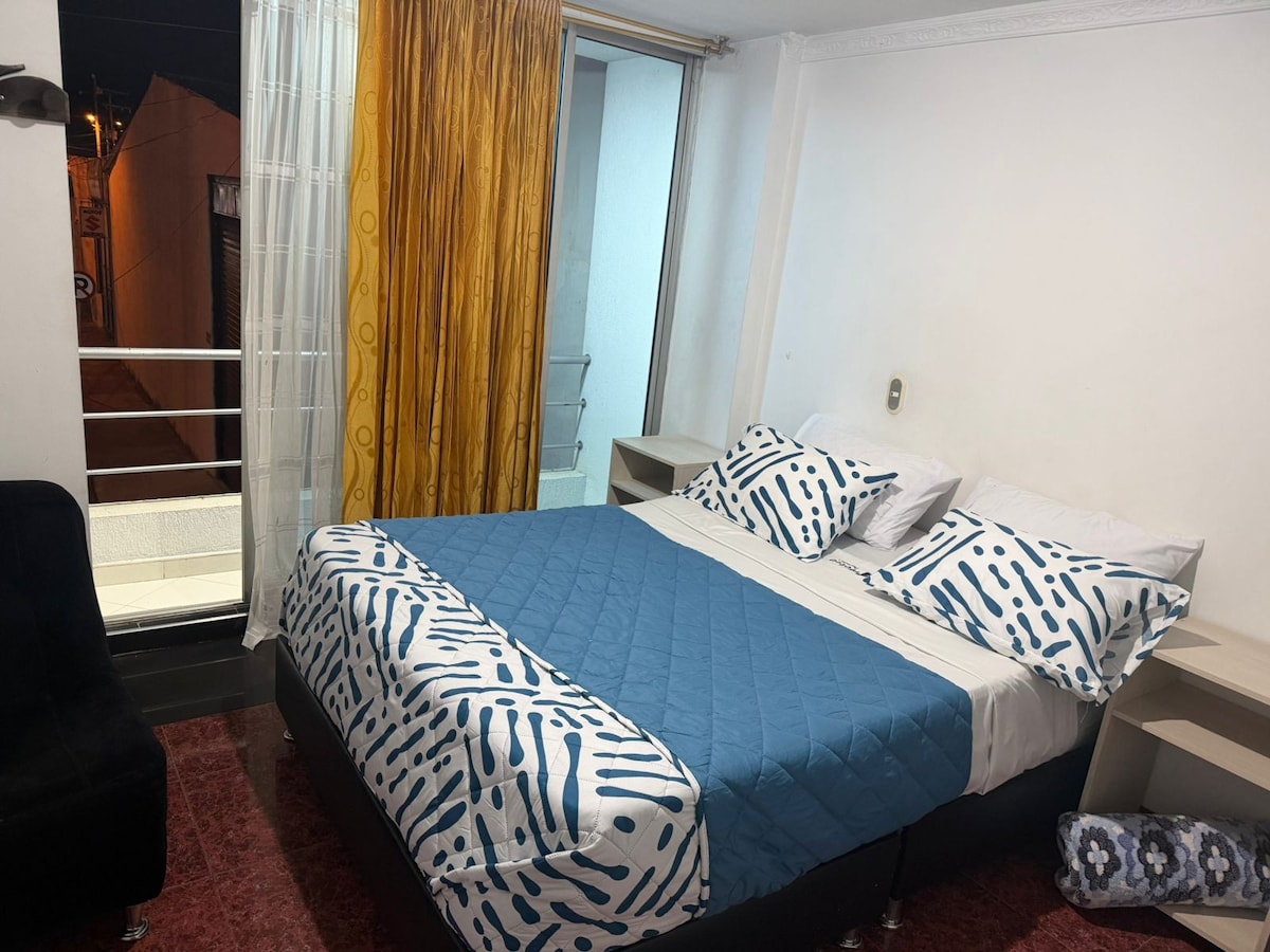 Enjoy the tranquility of Boyacá from this cozy accommodation located just minutes from the Sanctuary of Nuestra Señora del Rosario de Chiquinquirá. Ideal for relaxing, reflecting, or touring the region's most beautiful villages. Modern, fully equipped apartment with a great view for a quiet stay. Perfect location just a 4-minute walk from the Basilica and a 2-minute walk from supermarkets such as Exito and great gastronomic offerings in its surroundings.