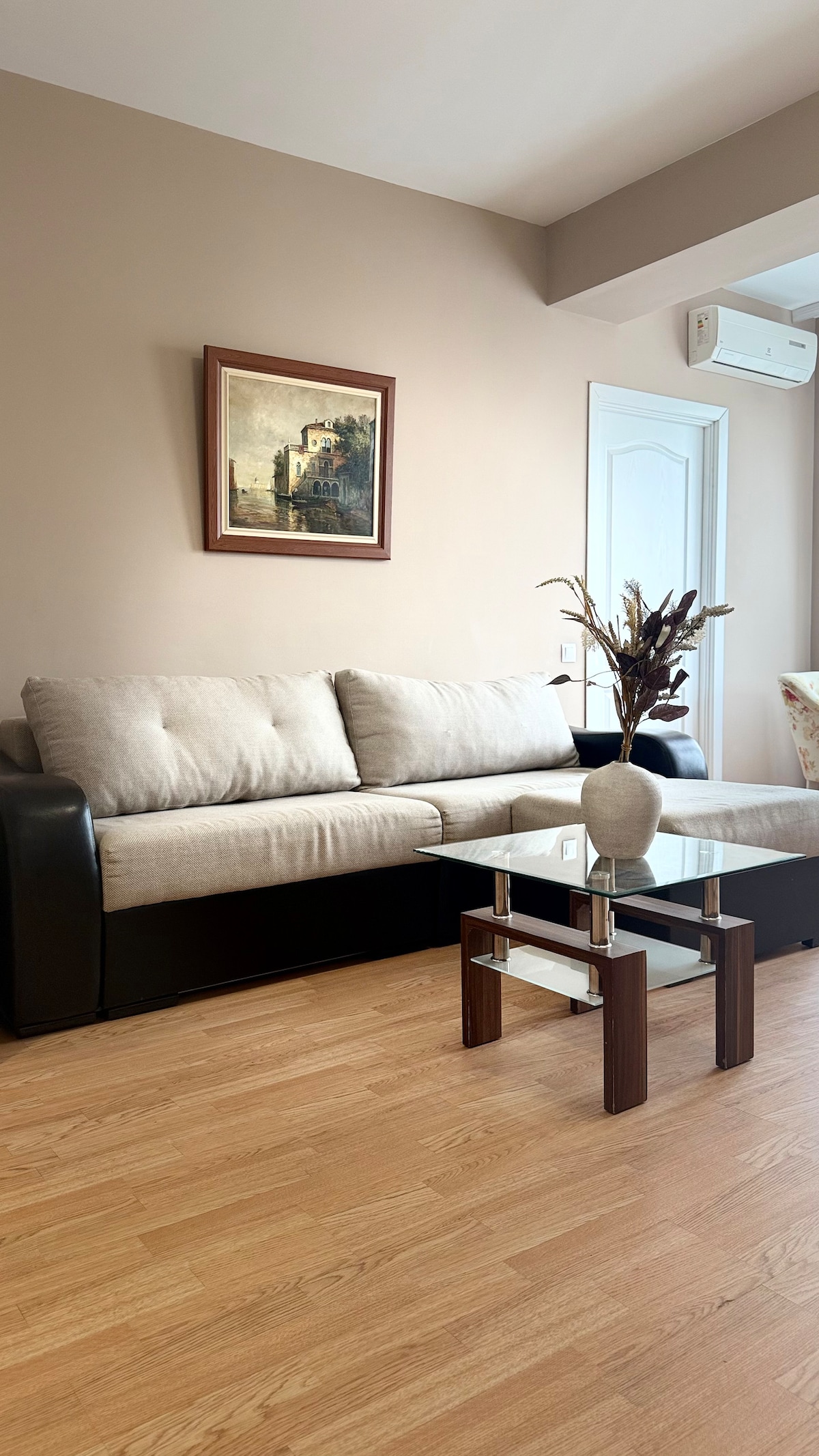 Elegant accommodation, neoclassical style, spacious 98 m2, in a new building, quiet residential area near the park (equipped with beach, sports and recreation places for children and adults). 5 minutes walk from Shopping Mall (Banks, Market, Restaurants, McDonald's, Cafes, Cinema, Bowling) and 1.5 km from the city center. Public transportation is easily accessible. Fully equipped kitchen, 2 smart TVs, Netflix, WiFi Home cleanliness and customer comfort is our priority
