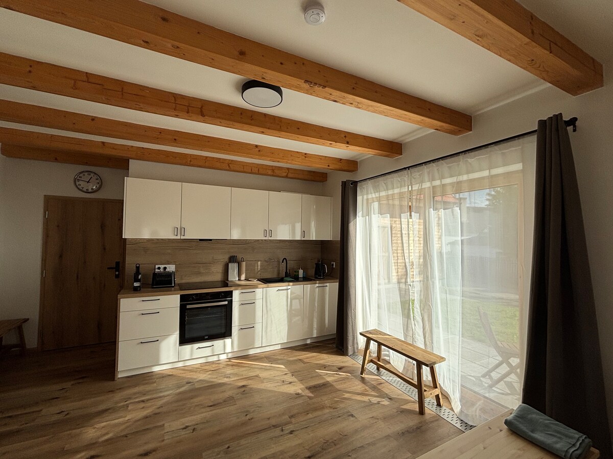You have the entire apartment unit to yourself. 2 beds are in the bedroom, 2 beds on a fold-out bed with quality mattresses. You can enjoy a large terrace with seating. Our family lives on the ground floor, there is another apartment in the attic, which is adjacent to the apartment. Guests appreciate the view of the pond, walking or cycling in the nearby forests, or the possibility of visiting the surrounding cultural monuments. The house is located in a village near Jindřichův Hradec. You can relax, whether you're passing through or want to stay for a few days.