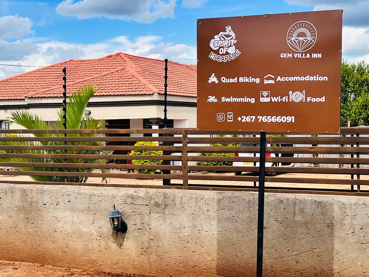 Gem Villa Inn stands out to clients for a blend of comfort, convenience, and adventure: - Refreshing swimming pool for leisure and relaxation - Ensuite rooms for privacy and convenience - Air-conditioning for comfort in all rooms - Consistent warm water for a reliable stay - Access to a fully equipped kitchen - Ample dining area for groups and families - Exciting activities nearby: quad biking, game drives, boat cruises, and day trips to Victoria Falls