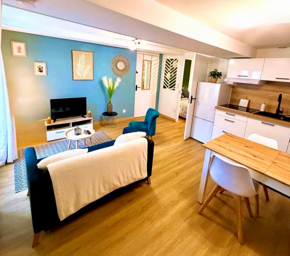 Come and spend a dream night with the one you love, in this quiet and elegant 50 m2 accommodation. We sincerely hope that you will enjoy this place, the key words of your stay will be love, relaxation and rest. For this, a bedroom with a spa bath and shower awaits you. In the other room you will enjoy a real kitchen with living room. We are located in Dole, a charming gastronomic and cultural city in the Jura