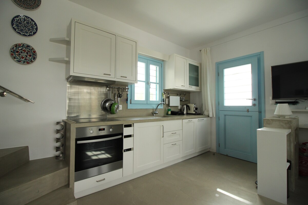 Welcome to our bright and welcoming studio, built with respect for traditional Cycladic architecture. Whitewashed walls, modern touches and natural materials create a serene and authentic atmosphere. The studio ia located in the centre of town,(might have a noise in the night) The studio includes: • A comfortable double bed • A fully equipped kitchenette for preparing breakfast or light meals • A tasteful bathroom with a traditional-style shower • Air conditioning, TV, and Wi-Fi