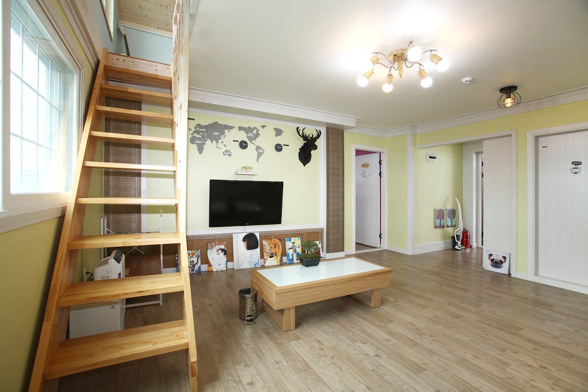 This is an antique sensational accommodation in Chuncheon, the lakeside city. It is located in Janggak-ri, Dongmyeon, and is within 10 minutes from Legoland and Soyang Dam. It is a private house on the second floor and can only be used comfortably by the booker. The room is composed of 2, and a total of 3 queen-sized beds are prepared. The maximum capacity is 6 people. (The minimum number of people is 3, and an additional charge will be incurred from 4 people) There is a private barbecue with a good view on the second floor, and you can enjoy a delicious barbecue with a webber reel, not charcoal. (20,000 won for 4 people or less, 30,000 won for 5 people or more - on-site payment) Small dogs are allowed, and an additional cost of 30,000 won per night per child will be incurred (on-site payment) sns If you leave a review (Airbnb review, blog, cafe, Instagram, etc.), we will provide you with a simple breakfast (sandwich and coffee).(Please indicate that it is * request to write a review * when making a reservation ~ If you don't have a request at the time of booking, it will not be provided.) For consecutive nights, breakfast is only provided once.(Breakfast is not provided on days when there is a special situation for Chuseok, Shinjeong, Gujeong holiday, and host.