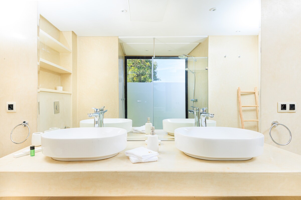 In this beautiful villa you can enjoy 2 large open living rooms with views of the large swimming pool, a large ultra-modern kitchen equipped with a dining area for everyone to enjoy. A garden with a trampoline and a ping-pong table and a foosball table to delight and occupy children or older children. The villa consists of 3 bedrooms with 2 large beds (Queen Size) and 2 single beds, has 3 high-end bathrooms, and also a very elegant hammam.