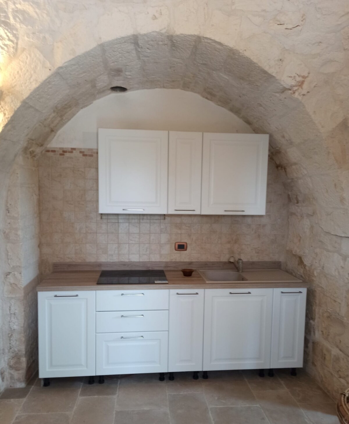 The property is a fully renovated 19th-century trullo, equipped with heating, air conditioning, a smart TV, and Wi-Fi. The bedroom features a queen-size bed with nightstands, reading lamps, and a closet. In the living room, which is equipped with a refrigerator, microwave oven, toaster, and espresso coffee machine, there is a sofa bed; guests can cook and dine at a table that seats four people. From the living room, you can access the bathroom, which is equipped with a washing machine, hot water, and all the necessary sanitary fixtures: a toilet, a sink, a bidet, and a walk-in shower.