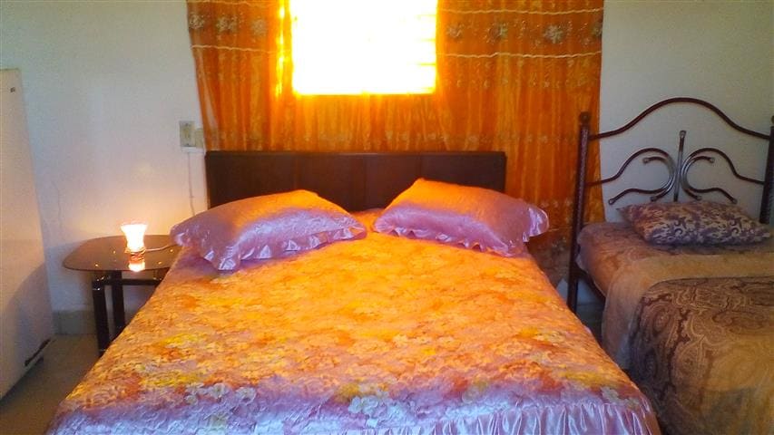 The house has solar panels, guaranteeing electricity and internet access. Upon arrival, you'll find a spacious room with a private bathroom, air conditioning, rechargeable fans, a refrigerator, and other amenities for a comfortable stay. You also have access to a terrace with city views and an outdoor area for enjoying breakfast in the morning.
