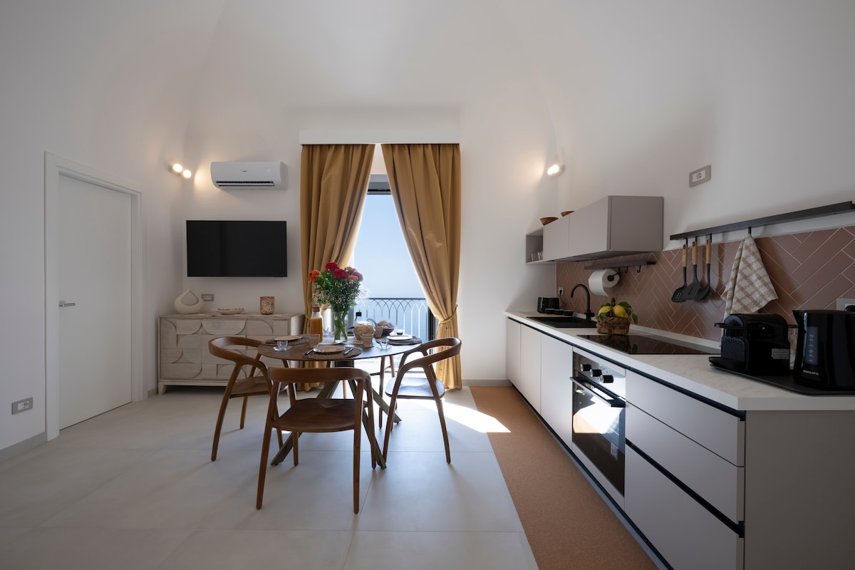 Lo Zaffiro apartment is a seaview peaceful retreat located in the small hamlet of Tovere (San Pietro), on the Amalfi Coast. Newly renovated, inspired by the finesse of Italian craftsmanship, made with hand-made ceramic tiles and lava stone furnishings to create a marvellous ambience that allows you to enjoy “la dolce vita”. With a wide terrace on which to relax and unwind with the sparkiling views of the Tyrrhenian Sea, included Li Galli Islands and the famous Faraglioni Rocks in the distance.