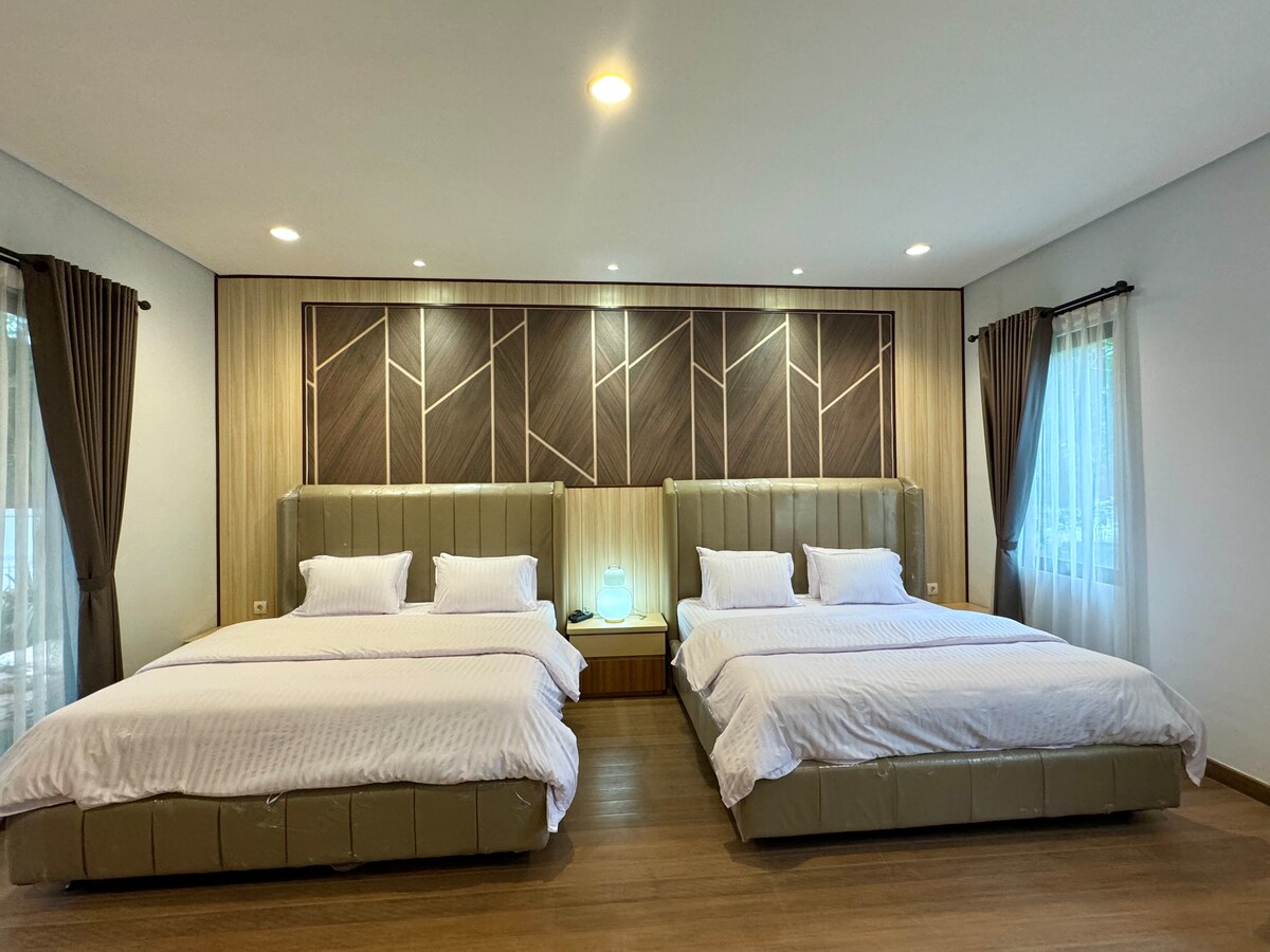 Casa de Monique Glamping Resort đżâ¨ Escape to comfort and elegance in this spacious 3-Bedroom Luxury Villa, nestled within the lush hills of Casa de Monique Bogor. Perfect for large families or groups (up to 12 guests), this villa blends modern luxury with natural tranquility â offering an unforgettable stay surrounded by cool mountain air and breathtaking views. đżâ¨