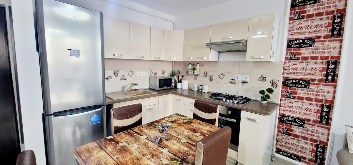 Welcome to our cozy apartment in Sibiu! Here you will find a comfortable and modern space, perfect for a family of 4. The apartment features 2 separate bedrooms, providing privacy and relaxation for all guests. Located in a quiet residential area, you will have the opportunity to enjoy a relaxing atmosphere and a peaceful night's sleep. It is conveniently situated just a 4-minute walk from the bus station and a 10-minute drive from the city center.
