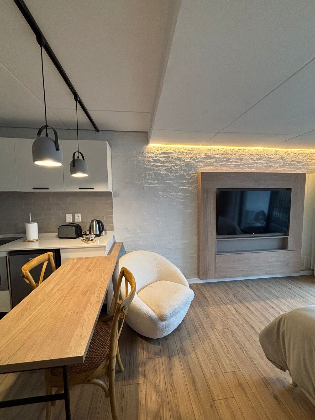 Enjoy a unique stay with all the amenities. Located in a privileged natural environment, it has an excellent view of the lake and a quiet environment where the sound of nature accompanies you. Outdoor pool, heated Jacuzzi pool, kitchen studio, coworking rooms, barbecues, and spaces designed for your comfort. Ideal for both relaxing getaways and extended stays. Experience the perfect combination of comfort, nature and design in a beautiful place!