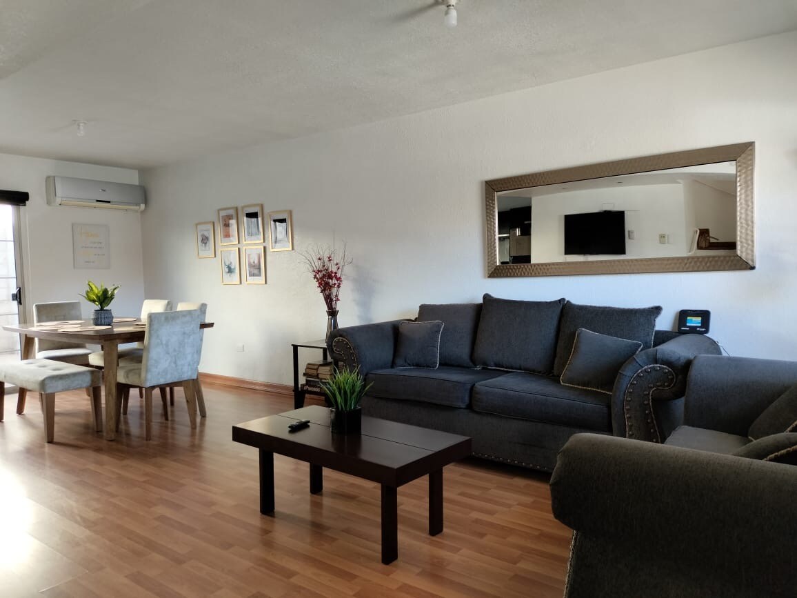 Comfortable and safe apartment, located in the most central area of the city. It has all the essentials plus Wi-Fi, two mini-splits, a private garage for one vehicle, and a terrace area with a barbecue. Two bedrooms with a closet, a queen-size bed and two twin beds, a living room with a sofa, and an equipped kitchen. Parking with electric gate. 5 minutes from shopping plazas, 15 minutes from the American consulate and 15 minutes from international bridges