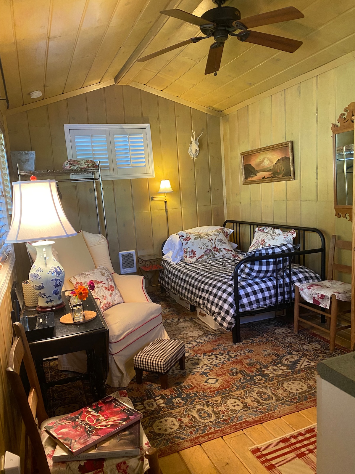 This private, renovated art studio has skylights and quiet views of nature. As an interior designer, I loved creating a space that is as much an experience as a night away from home...and only 10 miles from downtown Portland! Please be advised that beginning Dec19, 2025, construction has begun on three homes behind our cottage. Work can begin at 7:00AM-4:00PM Mon-Fri. There could be noise during those hours, it's out of our control.