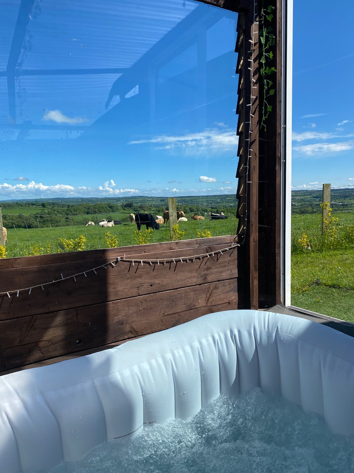 Escape to An Doras Bui, a bespoke Shepherd’s Hut nestled in the heart of the Sperrins. Designed for total privacy, this one-of-a-kind retreat offers panoramic views from your private electric hot tub. Spend evenings by the firepit under the stars, and wake to a chorus of birdsong. A secluded country sanctuary just 10 mins from local villages—the perfect base to explore the area's natural beauty or simply disconnect in style. Your ultimate mountain hideaway awaits.