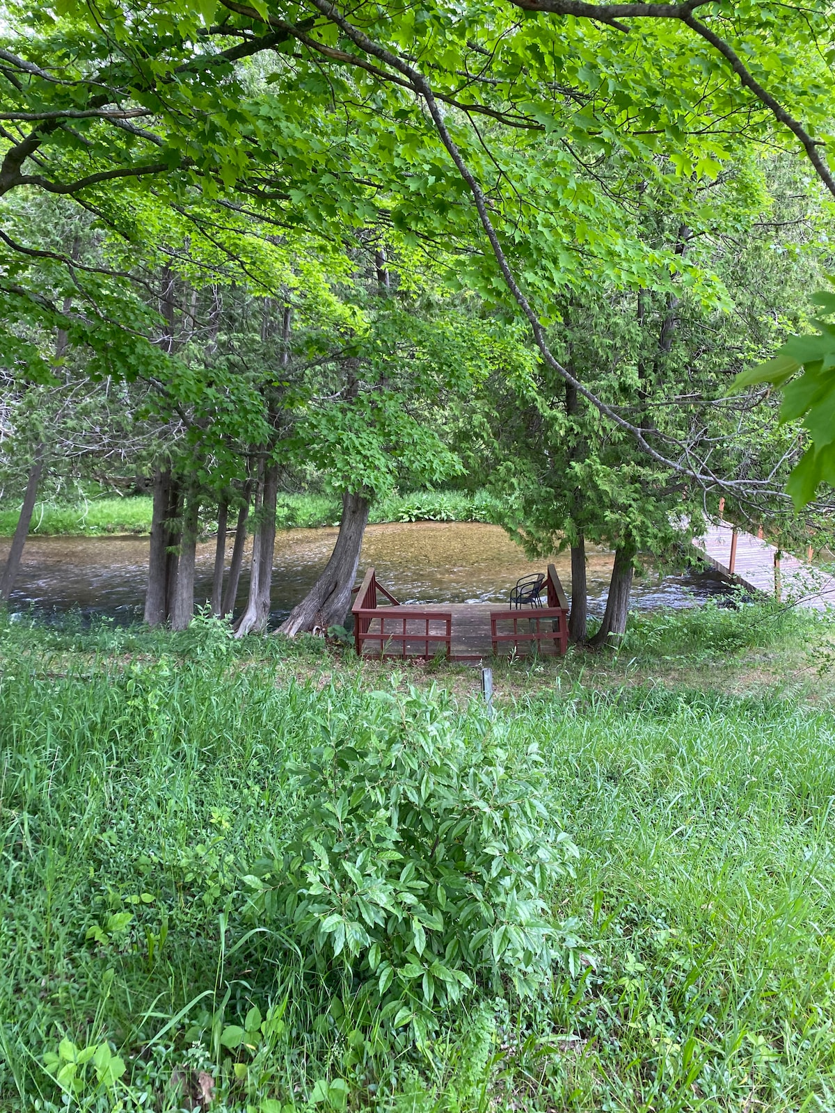 Escape to your own private oasis in this newly renovated, peaceful, clean 3 bedroom home on 200 ft of Rapid River! Perfect layout for a family and another couple! High speed fiber optic internet! With plenty of sunshine and shade trees you can kick back with a book while enjoying your favorite beverage on the private waterside deck, dangle your feet in the river from the private bridge, catch a glimpse of a bald eagle or throw a line in to catch a trout or two. What more can you ask for?