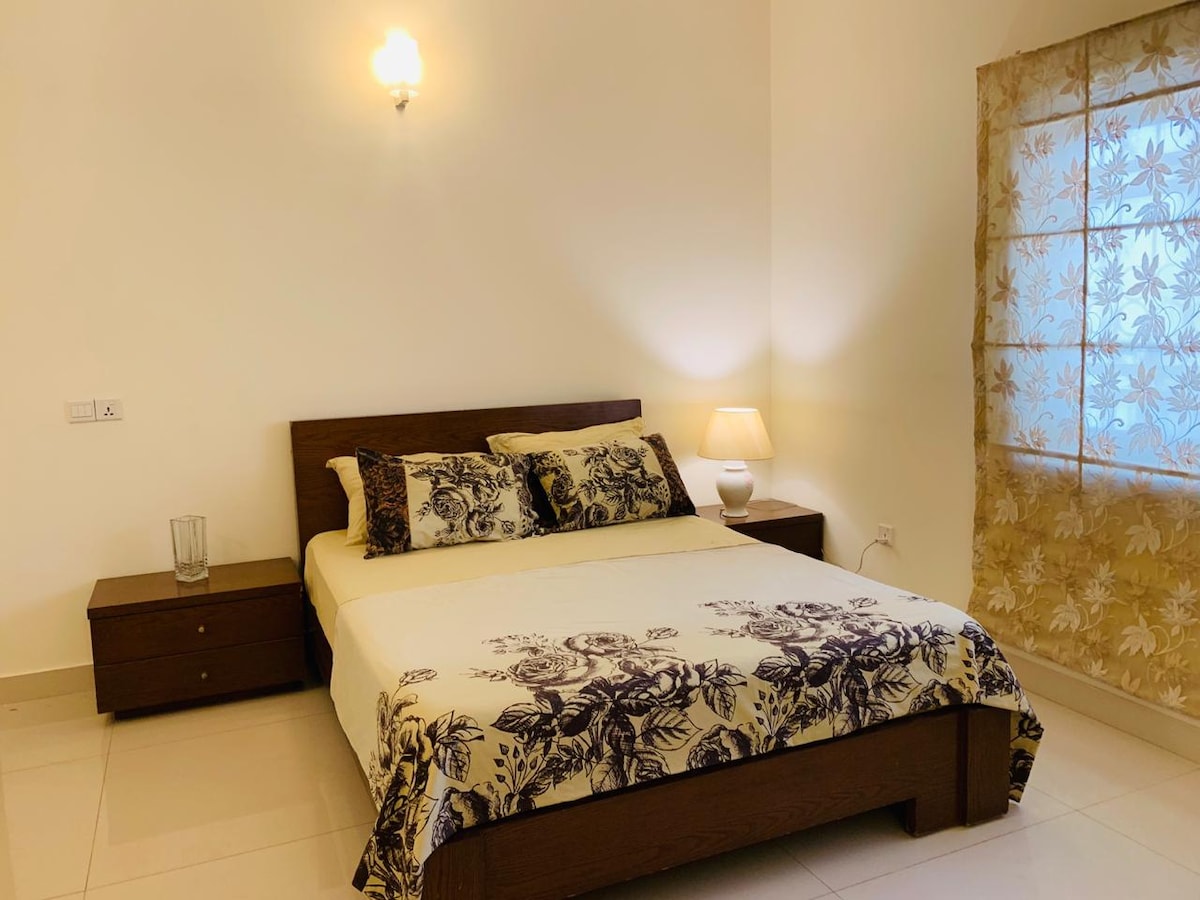 **Harmony Haven:** Our 1BR apartment offers a king-size bed, Wi-Fi, UHD Smart TVs & AC in every room. Centrally located at Shahbaz Commercial & comes with a complete kitchen as well as living room. Safety & privacy on the 1st floor is a surety. Enjoy food delivery, taxis, and extras like coffee, breakfast, and laundry at affordable rates. Nearby, find eateries like Nandos, Sakura and Costa as well as Nice Superstore. Experience comfort and convenience at Harmony Haven – your Karachi retreat