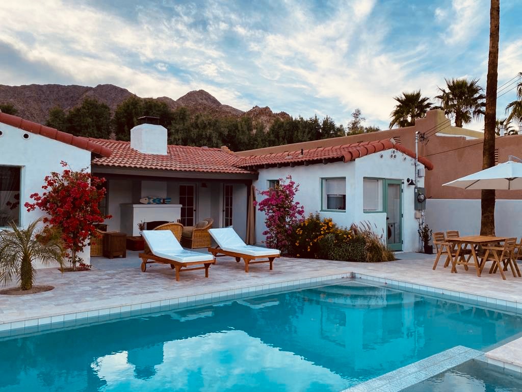 "Casita Luna" was built in the La Quinta Cove in 1937 as one of the 63 Spanish style Casitas -Gated backyard inspired by the Cahuilla Tribe - Saltwater Pool and Spa - Pet-Friendly -Central AC/Heat - Wifi secured high speed - 55” HDTV smart TV with cable box - Covered Back porch with original wood-burning outdoor fireplace - Hiking/Biking paths close by - La Quinta Old Town shopping and dining within walking distance - Public tennis courts close by - Weber BBQ grill - out side shower