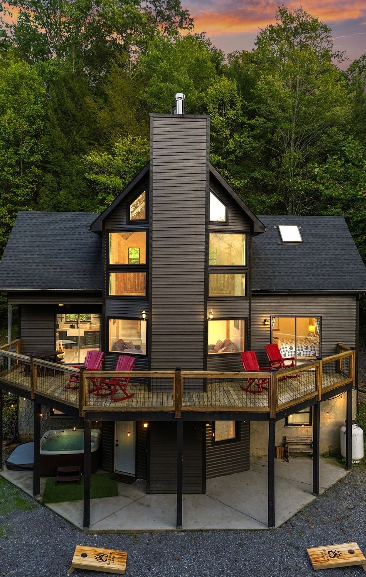 Escape to our Scandinavian-style A-frame nestled in the heart of the Smoky Mountains! Handcrafted with care, our cabin offers a cozy retreat with modern comforts and luxurious touches. Whether you're soaking in the year round hot tub, relaxing by the fire pit, or unwinding in the infrared sauna, you’ll feel like you’ve stepped into your own mountain fairy tale. Ideally located only 15 min from The Great Smoky Mountains National Park, 25 min to Gatlinburg & Pigeon Forge, & 60 min to Asheville!
