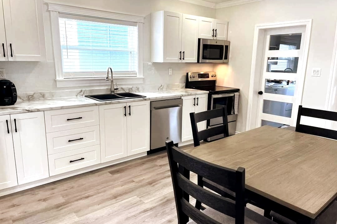 Enjoy a stay in our suite. Just a few minutes from the ferry. Our suites have fully equipped kitchens and dining room tables. So you can prepare your own meals. We supply pots, pans, utensils, dishes, glasses, and cuttery. We even supply the dish soap! You will also find the comforts of home like a keurig machine with coffee/tea, kettle, microwave, toaster, and even air fryer