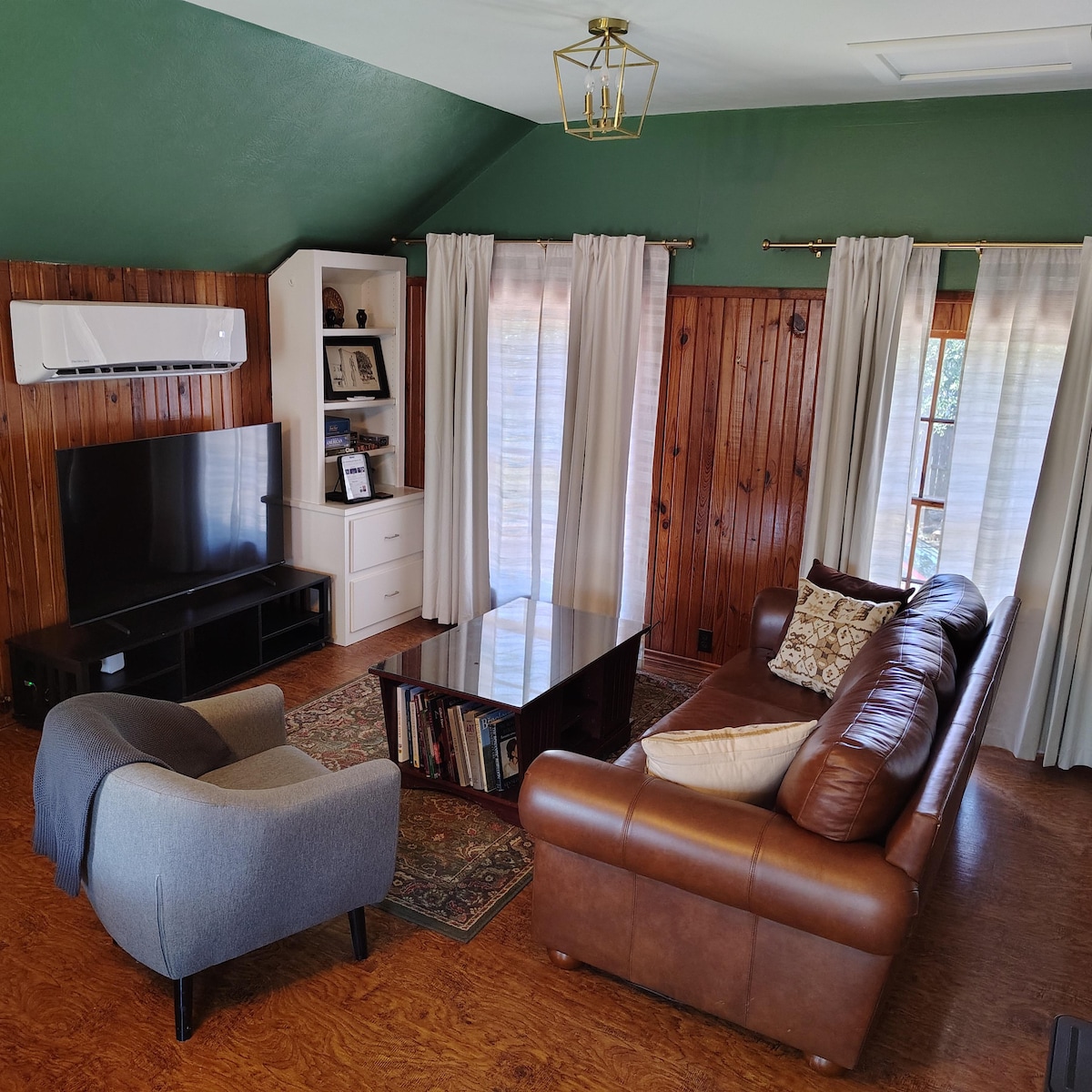 Welcome to our cozy studio apartment with its own private entrance, nestled alongside our home for your seclusion and convenience. It features a king-size bed for a peaceful sleep, a fully-equipped kitchen, and a comfy couch with TV for relaxation. Enjoy meals at the dining table and use the desk for work needs. Ideal for both leisure and business stays, our studio combines comfort with essential amenities to ensure a delightful visit.