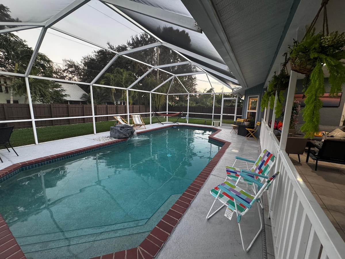A tropical escape perfect for large groups and events! Very close to Paradise Coast Sports Complex and Great Wolf Lodge. Featuring Dolby Atmos 4K Theater w/ IMAX seating. 3000sqft home on 2 acres: 6BR, 5BA, incl. private suite w/ kitchen. Relax in pool/spa or entertain at outdoor BBQ pit & gazebo. Just 10 min from beaches! Stocked gourmet kitchen w/ pro espresso station. Luxurious comfort in spacious, private setting, great for large groups, gatherings and events!