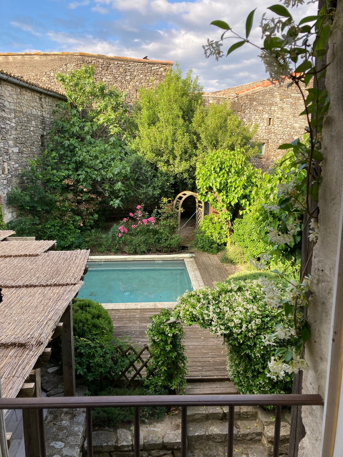Welcome to our private oasis for 1 or 2 people in the heart of la roquette! Enjoy the heated salt water pool surrounded by tropical plants. The space will offer you a haven of shade and tranquility. Have breakfast, an aperitif, or cook poolside in the outdoor patio kitchen. The bedroom is air conditioned and equipped with luxury hotel quality bedding and organic linens, to ensure that your stay is relaxing and memorable.